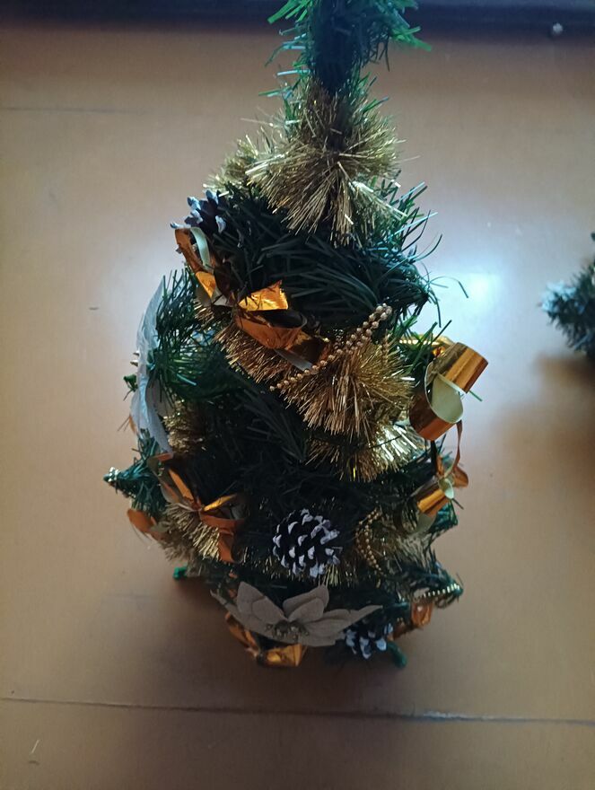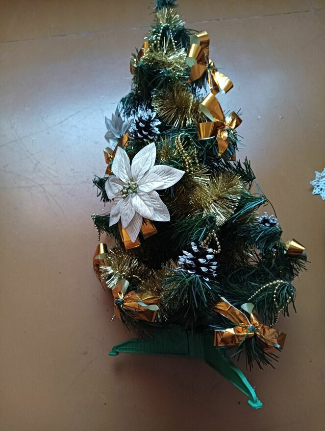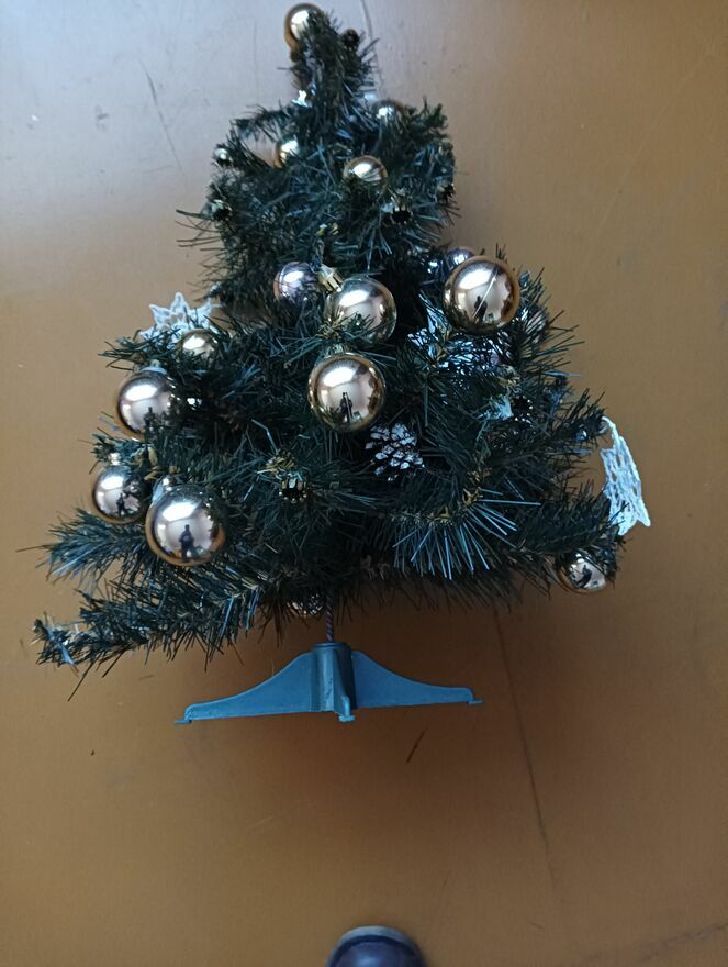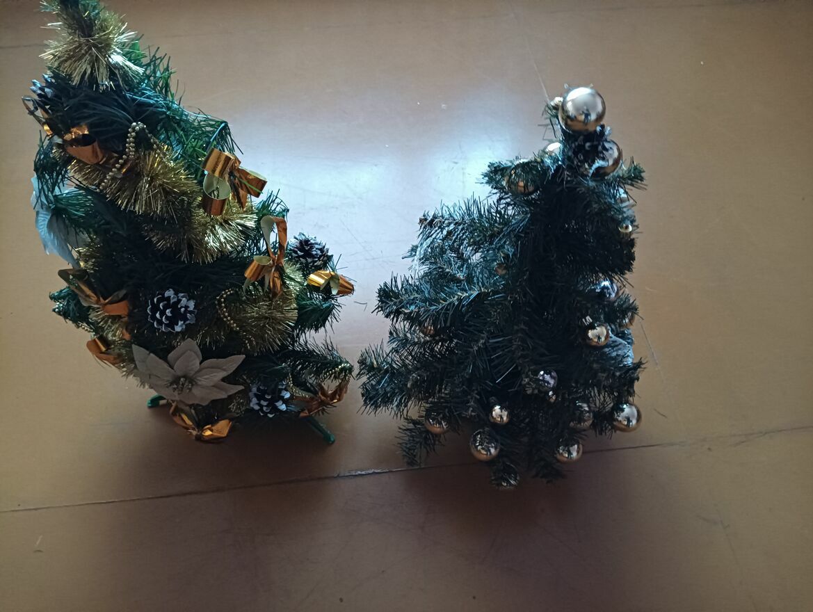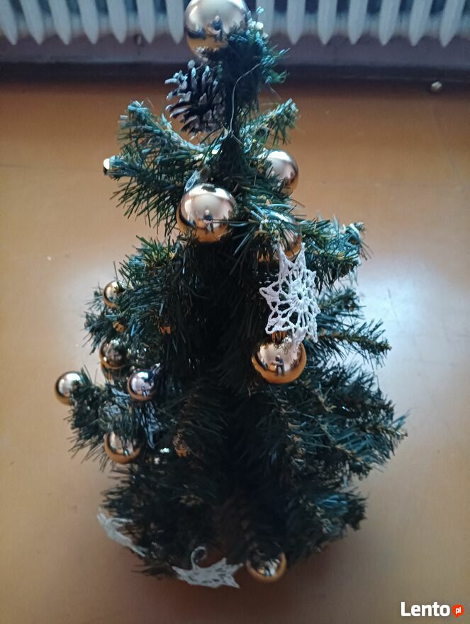 Choinki małe sztuczne na stojakach sprzedam dwie sztuki tak jak widać jakieś ozdoby bombki jedna około 60 cma druga 76 cm tak mniej więcej cena za całość lub kupno osobno